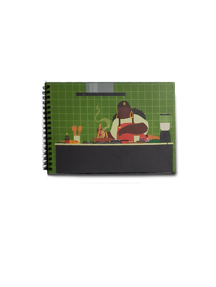 As capas dos cadernos de receitas do Estúdio Retinto apresentam sempre uma temática afro buscando trazer pra você um caderno de receitas que seja a cara do nosso povo. Esse aqui, por exemplo, traz uma arte exclusiva do artista visual Patek. Feito especialmente pra quem ama dendê.